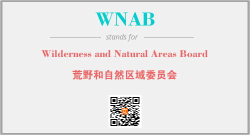上述内容是“Wilderness and Natural Areas Board”作为“WNAB”的缩写,解释为“荒野和自然区域委员会”时的信息,以及英文缩略词WNAB所代表的英文单词,其对应的中文拼音、详细解释以及在英文中的流行度和相关分类、应用领域及应用示例等。