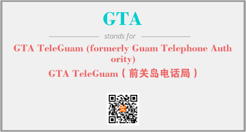 英文缩略词“GTA”经常作为“GTA TeleGuam (formerly Guam Telephone Authority)”的英文缩写来使用,中文表示:“GTA TeleGuam(前关岛电话局)”。本文将详细介绍英文缩写词GTA所代表英文单词,其对应的中文拼音、详细解释以及在英语中的流行度。此外,还有关于缩略词GTA的分类、应用领域及相关应用示例等。