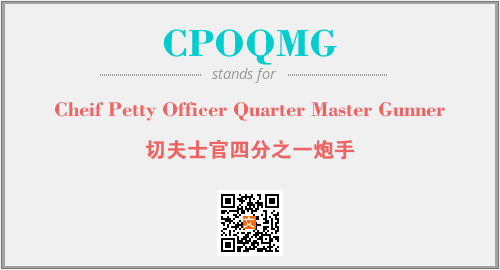 上述内容是“Cheif Petty Officer Quarter Master Gunner”作为“CPOQMG”的缩写,解释为“切夫士官四分之一炮手”时的信息,以及英文缩略词CPOQMG所代表的英文单词,其对应的中文拼音、详细解释以及在英文中的流行度和相关分类、应用领域及应用示例等。