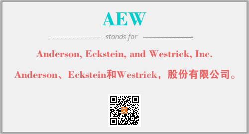上述内容是“Anderson, Eckstein, and Westrick, Inc.”作为“AEW”的缩写,解释为“Anderson、Eckstein和Westrick,股份有限公司。”时的信息,以及英文缩略词AEW所代表的英文单词,其对应的中文拼音、详细解释以及在英文中的流行度和相关分类、应用领域及应用示例等。