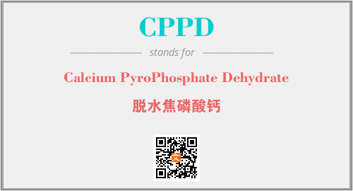 英文缩略词“CPPD”经常作为“Calcium PyroPhosphate Dehydrate”的英文缩写来使用,中文表示:“脱水焦磷酸钙”。本文将详细介绍英文缩写词CPPD所代表英文单词,其对应的中文拼音、详细解释以及在英语中的流行度。此外,还有关于缩略词CPPD的分类、应用领域及相关应用示例等。