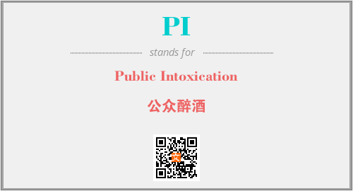 英文缩略词“PI”经常作为“Public Intoxication”的英文缩写来使用,中文表示:“公众醉酒”。本文将详细介绍英文缩写词PI所代表英文单词,其对应的中文拼音、详细解释以及在英语中的流行度。此外,还有关于缩略词PI的分类、应用领域及相关应用示例等。