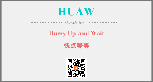 英文缩略词“HUAW”经常作为“Hurry Up And Wait”的英文缩写来使用,中文表示:“快点等等”。本文将详细介绍英文缩写词HUAW所代表英文单词,其对应的中文拼音、详细解释以及在英语中的流行度。此外,还有关于缩略词HUAW的分类、应用领域及相关应用示例等。