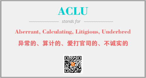 以上为Aberrant, Calculating, Litigious, Underbred英文缩略词ACLU的中文解释,以及该英文缩写在英语的流行度、分类和应用领域方面的信息。