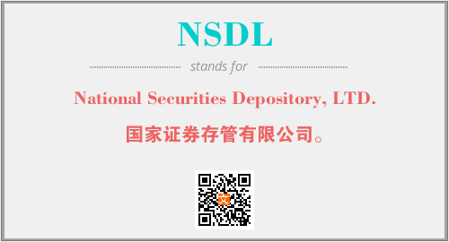 上述内容是“National Securities Depository, LTD.”作为“NSDL”的缩写,解释为“国家证券存管有限公司。”时的信息,以及英文缩略词NSDL所代表的英文单词,其对应的中文拼音、详细解释以及在英文中的流行度和相关分类、应用领域及应用示例等。