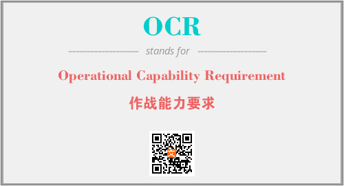 上述内容是“Operational Capability Requirement”作为“OCR”的缩写,解释为“作战能力要求”时的信息,以及英文缩略词OCR所代表的英文单词,其对应的中文拼音、详细解释以及在英文中的流行度和相关分类、应用领域及应用示例等。