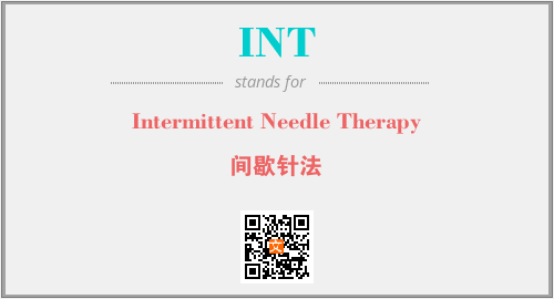 上述内容是“Intermittent Needle Therapy”作为“INT”的缩写,解释为“间歇针法”时的信息,以及英文缩略词INT所代表的英文单词,其对应的中文拼音、详细解释以及在英文中的流行度和相关分类、应用领域及应用示例等。