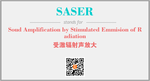 上述内容是“Soud Amplification by Stimulated Emmision of Radiation”作为“SASER”的缩写,解释为“受激辐射声放大”时的信息,以及英文缩略词SASER所代表的英文单词,其对应的中文拼音、详细解释以及在英文中的流行度和相关分类、应用领域及应用示例等。