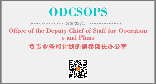 英文缩略词“ODCSOPS”经常作为“Office of the Deputy Chief of Staff for Operations and Plans”的英文缩写来使用,中文表示:“负责业务和计划的副参谋长办公室”。本文将详细介绍英文缩写词ODCSOPS所代表英文单词,其对应的中文拼音、详细解释以及在英语中的流行度。此外,还有关于缩略词ODCSOPS的分类、应用领域及相关应用示例等。