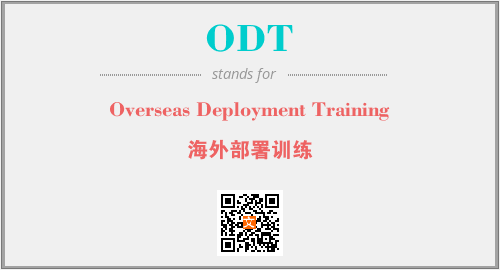 英文缩略词“ODT”经常作为“Overseas Deployment Training”的英文缩写来使用,中文表示:“海外部署训练”。本文将详细介绍英文缩写词ODT所代表英文单词,其对应的中文拼音、详细解释以及在英语中的流行度。此外,还有关于缩略词ODT的分类、应用领域及相关应用示例等。