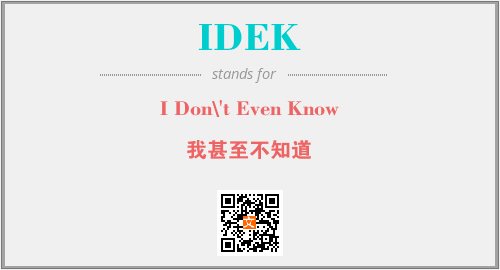 以上为I Don\'t Even Know英文缩略词IDEK的中文解释,以及该英文缩写在英语的流行度、分类和应用领域方面的信息。