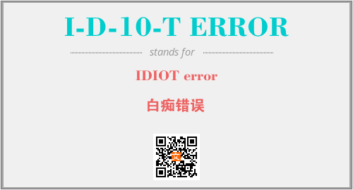 英文缩略词“I-D-10-T ERROR”经常作为“IDIOT error”的英文缩写来使用,中文表示:“白痴错误”。本文将详细介绍英文缩写词I-D-10-T ERROR所代表英文单词,其对应的中文拼音、详细解释以及在英语中的流行度。此外,还有关于缩略词I-D-10-T ERROR的分类、应用领域及相关应用示例等。