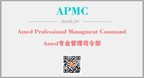 英文缩略词“APMC”经常作为“Amed Professional Managment Command”的英文缩写来使用,中文表示:“Amed专业管理司令部”。本文将详细介绍英文缩写词APMC所代表英文单词,其对应的中文拼音、详细解释以及在英语中的流行度。此外,还有关于缩略词APMC的分类、应用领域及相关应用示例等。
