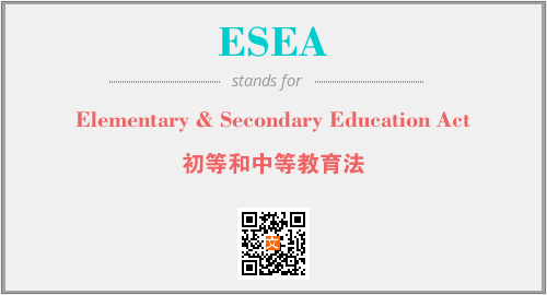 英文缩略词“ESEA”经常作为“Elementary & Secondary Education Act”的英文缩写来使用,中文表示:“初等和中等教育法”。本文将详细介绍英文缩写词ESEA所代表英文单词,其对应的中文拼音、详细解释以及在英语中的流行度。此外,还有关于缩略词ESEA的分类、应用领域及相关应用示例等。