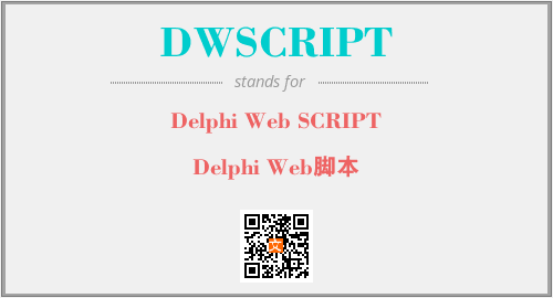 上述内容是“Delphi Web SCRIPT”作为“DWSCRIPT”的缩写,解释为“Delphi Web脚本”时的信息,以及英文缩略词DWSCRIPT所代表的英文单词,其对应的中文拼音、详细解释以及在英文中的流行度和相关分类、应用领域及应用示例等。