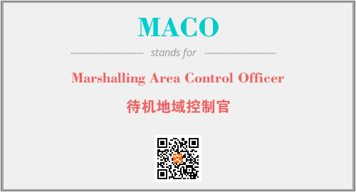 上述内容是“Marshalling Area Control Officer”作为“MACO”的缩写,解释为“待机地域控制官”时的信息,以及英文缩略词MACO所代表的英文单词,其对应的中文拼音、详细解释以及在英文中的流行度和相关分类、应用领域及应用示例等。