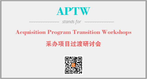 上述内容是“Acquisition Program Transition Workshops”作为“APTW”的缩写,解释为“采办项目过渡研讨会”时的信息,以及英文缩略词APTW所代表的英文单词,其对应的中文拼音、详细解释以及在英文中的流行度和相关分类、应用领域及应用示例等。