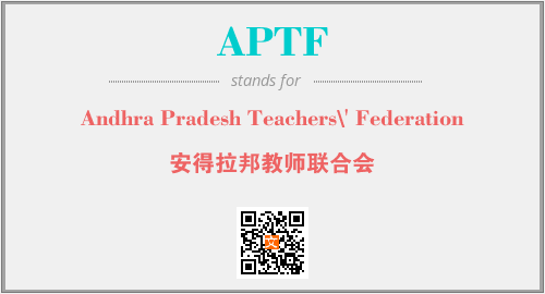 上述内容是“Andhra Pradesh Teachers\' Federation”作为“APTF”的缩写,解释为“安得拉邦教师联合会”时的信息,以及英文缩略词APTF所代表的英文单词,其对应的中文拼音、详细解释以及在英文中的流行度和相关分类、应用领域及应用示例等。