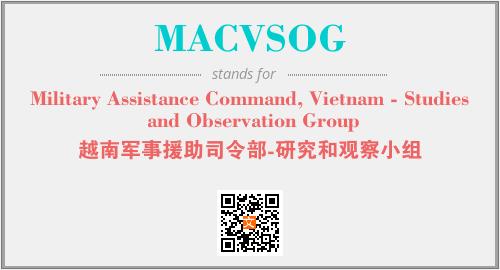 上述内容是“Military Assistance Command, Vietnam - Studies and Observation Group”作为“MACVSOG”的缩写,解释为“越南军事援助司令部-研究和观察小组”时的信息,以及英文缩略词MACVSOG所代表的英文单词,其对应的中文拼音、详细解释以及在英文中的流行度和相关分类、应用领域及应用示例等。