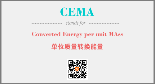 上述内容是“Converted Energy per unit MAss”作为“CEMA”的缩写,解释为“单位质量转换能量”时的信息,以及英文缩略词CEMA所代表的英文单词,其对应的中文拼音、详细解释以及在英文中的流行度和相关分类、应用领域及应用示例等。