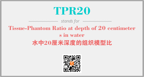 上述内容是“Tissue-Phantom Ratio at depth of 20 centimeters in water”作为“TPR20”的缩写,解释为“水中20厘米深度的组织模型比”时的信息,以及英文缩略词TPR20所代表的英文单词,其对应的中文拼音、详细解释以及在英文中的流行度和相关分类、应用领域及应用示例等。