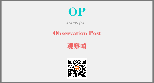 英文缩略词“OP”经常作为“Observation Post”的英文缩写来使用,中文表示:“观察哨”。本文将详细介绍英文缩写词OP所代表英文单词,其对应的中文拼音、详细解释以及在英语中的流行度。此外,还有关于缩略词OP的分类、应用领域及相关应用示例等。