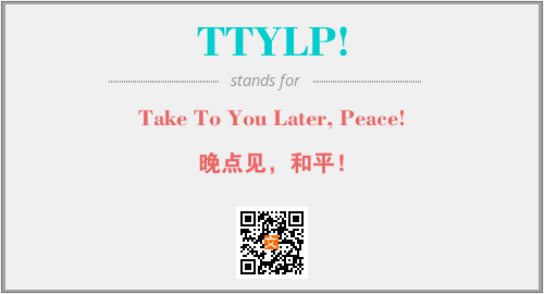 以上为Take To You Later, Peace!英文缩略词TTYLP!的中文解释,以及该英文缩写在英语的流行度、分类和应用领域方面的信息。