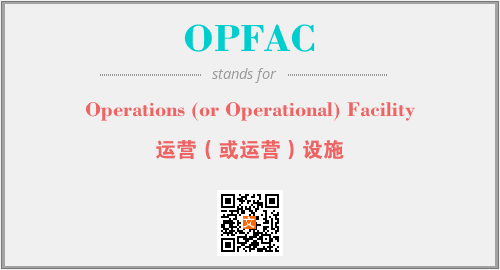 上述内容是“Operations (or Operational) Facility”作为“OPFAC”的缩写,解释为“运营(或运营)设施”时的信息,以及英文缩略词OPFAC所代表的英文单词,其对应的中文拼音、详细解释以及在英文中的流行度和相关分类、应用领域及应用示例等。