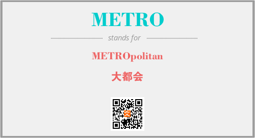 英文缩略词“METRO”经常作为“METROpolitan”的英文缩写来使用,中文表示:“大都会”。本文将详细介绍英文缩写词METRO所代表英文单词,其对应的中文拼音、详细解释以及在英语中的流行度。此外,还有关于缩略词METRO的分类、应用领域及相关应用示例等。