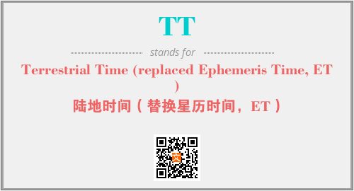 上述内容是“Terrestrial Time (replaced Ephemeris Time, ET)”作为“TT”的缩写,解释为“陆地时间(替换星历时间,ET)”时的信息,以及英文缩略词TT所代表的英文单词,其对应的中文拼音、详细解释以及在英文中的流行度和相关分类、应用领域及应用示例等。