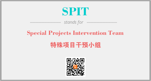 英文缩略词“SPIT”经常作为“Special Projects Intervention Team”的英文缩写来使用,中文表示:“特殊项目干预小组”。本文将详细介绍英文缩写词SPIT所代表英文单词,其对应的中文拼音、详细解释以及在英语中的流行度。此外,还有关于缩略词SPIT的分类、应用领域及相关应用示例等。