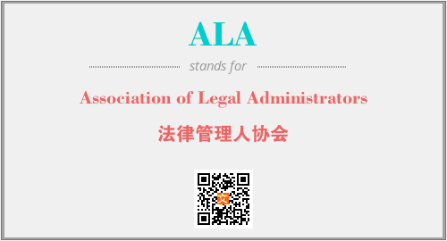 英文缩略词“ALA”经常作为“Association of Legal Administrators”的英文缩写来使用,中文表示:“法律管理人协会”。本文将详细介绍英文缩写词ALA所代表英文单词,其对应的中文拼音、详细解释以及在英语中的流行度。此外,还有关于缩略词ALA的分类、应用领域及相关应用示例等。