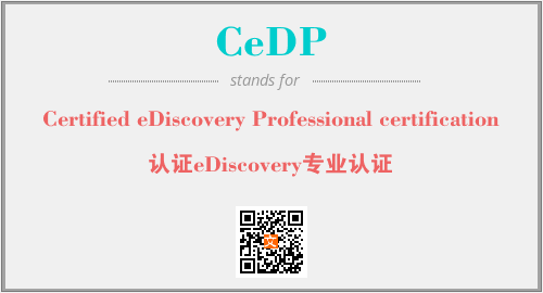 英文缩略词“CeDP”经常作为“Certified eDiscovery Professional certification”的英文缩写来使用,中文表示:“认证eDiscovery专业认证”。本文将详细介绍英文缩写词CeDP所代表英文单词,其对应的中文拼音、详细解释以及在英语中的流行度。此外,还有关于缩略词CeDP的分类、应用领域及相关应用示例等。