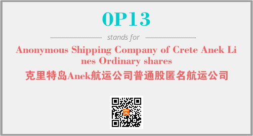 上述内容是“Anonymous Shipping Company of Crete Anek Lines Ordinary shares”作为“0P13”的缩写,解释为“克里特岛Anek航运公司普通股匿名航运公司”时的信息,以及英文缩略词0P13所代表的英文单词,其对应的中文拼音、详细解释以及在英文中的流行度和相关分类、应用领域及应用示例等。