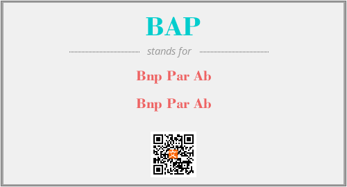 上述内容是“Bnp Par Ab”作为“BAP”的缩写,解释为“Bnp Par Ab”时的信息,以及英文缩略词BAP所代表的英文单词,其对应的中文拼音、详细解释以及在英文中的流行度和相关分类、应用领域及应用示例等。