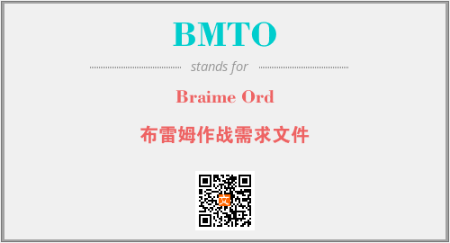 上述内容是“Braime Ord”作为“BMTO”的缩写,解释为“布雷姆作战需求文件”时的信息,以及英文缩略词BMTO所代表的英文单词,其对应的中文拼音、详细解释以及在英文中的流行度和相关分类、应用领域及应用示例等。