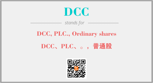 英文缩略词“DCC”经常作为“DCC, PLC., Ordinary shares”的英文缩写来使用,中文表示:“DCC、PLC、。,普通股”。本文将详细介绍英文缩写词DCC所代表英文单词,其对应的中文拼音、详细解释以及在英语中的流行度。此外,还有关于缩略词DCC的分类、应用领域及相关应用示例等。