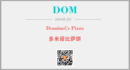 以上为Domino\'s Pizza英文缩略词DOM的中文解释,以及该英文缩写在英语的流行度、分类和应用领域方面的信息。
