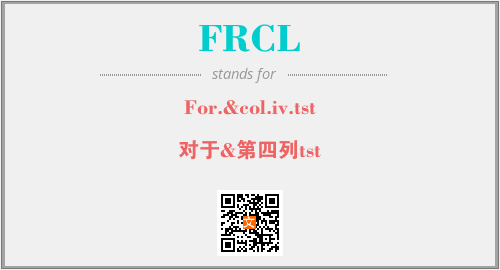 上述内容是“For.&col.iv.tst”作为“FRCL”的缩写,解释为“对于&第四列tst”时的信息,以及英文缩略词FRCL所代表的英文单词,其对应的中文拼音、详细解释以及在英文中的流行度和相关分类、应用领域及应用示例等。
