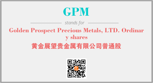 上述内容是“Golden Prospect Precious Metals, LTD. Ordinary shares”作为“GPM”的缩写,解释为“黄金展望贵金属有限公司普通股”时的信息,以及英文缩略词GPM所代表的英文单词,其对应的中文拼音、详细解释以及在英文中的流行度和相关分类、应用领域及应用示例等。