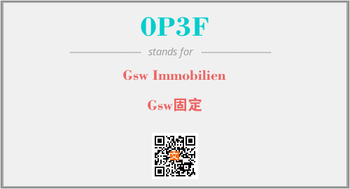 上述内容是“Gsw Immobilien”作为“0P3F”的缩写,解释为“Gsw固定”时的信息,以及英文缩略词0P3F所代表的英文单词,其对应的中文拼音、详细解释以及在英文中的流行度和相关分类、应用领域及应用示例等。