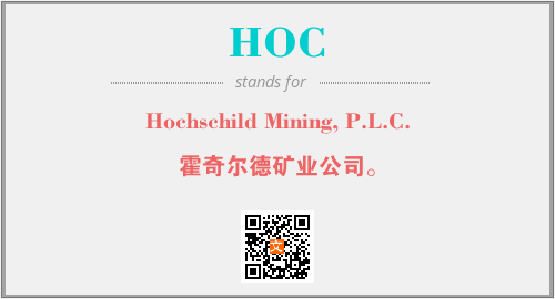 上述内容是“Hochschild Mining, P.L.C.”作为“HOC”的缩写,解释为“霍奇尔德矿业公司。”时的信息,以及英文缩略词HOC所代表的英文单词,其对应的中文拼音、详细解释以及在英文中的流行度和相关分类、应用领域及应用示例等。