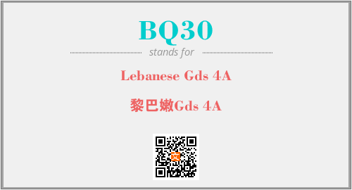 上述内容是“Lebanese Gds 4A”作为“BQ30”的缩写,解释为“黎巴嫩Gds 4A”时的信息,以及英文缩略词BQ30所代表的英文单词,其对应的中文拼音、详细解释以及在英文中的流行度和相关分类、应用领域及应用示例等。