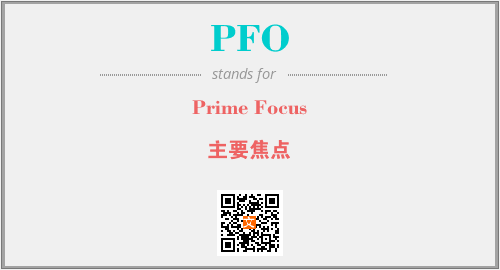 英文缩略词“PFO”经常作为“Prime Focus”的英文缩写来使用,中文表示:“主要焦点”。本文将详细介绍英文缩写词PFO所代表英文单词,其对应的中文拼音、详细解释以及在英语中的流行度。此外,还有关于缩略词PFO的分类、应用领域及相关应用示例等。