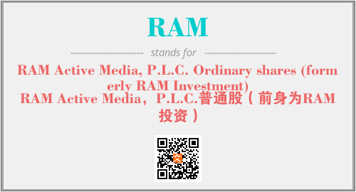 以上为RAM Active Media, P.L.C. Ordinary shares (formerly RAM Investment)英文缩略词RAM的中文解释,以及该英文缩写在英语的流行度、分类和应用领域方面的信息。