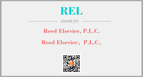 英文缩略词“REL”经常作为“Reed Elsevier, P.L.C.”的英文缩写来使用,中文表示:“Reed Elsevier,P.L.C。”。本文将详细介绍英文缩写词REL所代表英文单词,其对应的中文拼音、详细解释以及在英语中的流行度。此外,还有关于缩略词REL的分类、应用领域及相关应用示例等。