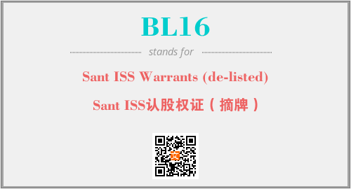 上述内容是“Sant ISS Warrants (de-listed)”作为“BL16”的缩写,解释为“Sant ISS认股权证(摘牌)”时的信息,以及英文缩略词BL16所代表的英文单词,其对应的中文拼音、详细解释以及在英文中的流行度和相关分类、应用领域及应用示例等。