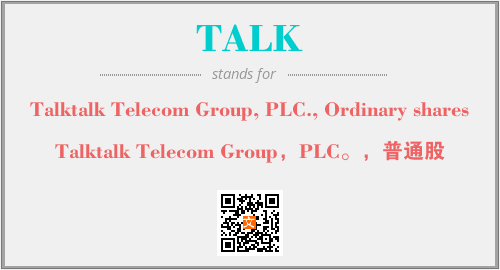 上述内容是“Talktalk Telecom Group, PLC., Ordinary shares”作为“TALK”的缩写,解释为“Talktalk Telecom Group,PLC。,普通股”时的信息,以及英文缩略词TALK所代表的英文单词,其对应的中文拼音、详细解释以及在英文中的流行度和相关分类、应用领域及应用示例等。