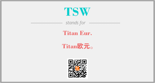 上述内容是“Titan Eur.”作为“TSW”的缩写,解释为“Titan欧元。”时的信息,以及英文缩略词TSW所代表的英文单词,其对应的中文拼音、详细解释以及在英文中的流行度和相关分类、应用领域及应用示例等。