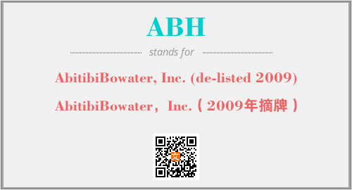 上述内容是“AbitibiBowater, Inc. (de-listed 2009)”作为“ABH”的缩写,解释为“AbitibiBowater,Inc.(2009年摘牌)”时的信息,以及英文缩略词ABH所代表的英文单词,其对应的中文拼音、详细解释以及在英文中的流行度和相关分类、应用领域及应用示例等。